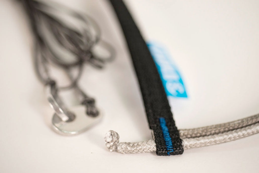Livré avec drisses Dyneema non gainées imprégnées et pré-étirée, et les crocs fendus de connexion aux élévateurs.