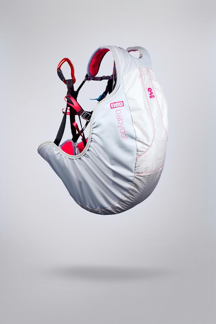 La Babydoll est la première création pour enfant de NEO. Elle a été conçue pour le biplace, le gonflage et même le vol. Cette véritable sellette de parapente passe les mêmes processus d’homologation que les sellettes adultes et obtient une certification EN avec une protection mousse homologuée CE.