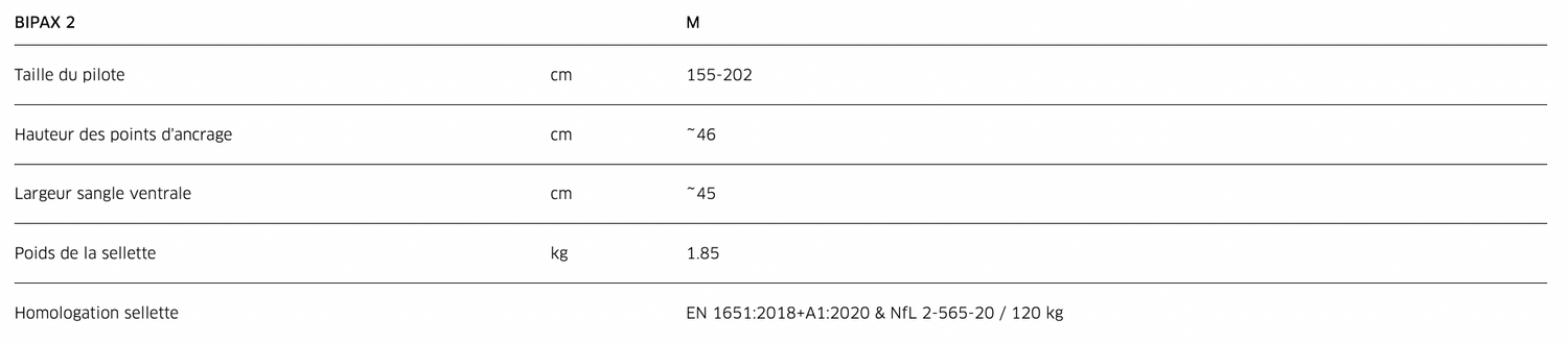 Sellette de biplace destinée au passager, la BIPAX 2 est prévue pour un usage professionnel. Simple, pratique et robuste, elle ne pèse qu’1,85 kg et dispose de divers détails pratiques qui, jour après jour, rendent la vie et le travail plus simples et plus sûrs. Si la BIPAX 2 a tout pour séduire les pros au quotidien, elle rendra aussi de fiers services à tout pilote de biplace occasionnel.