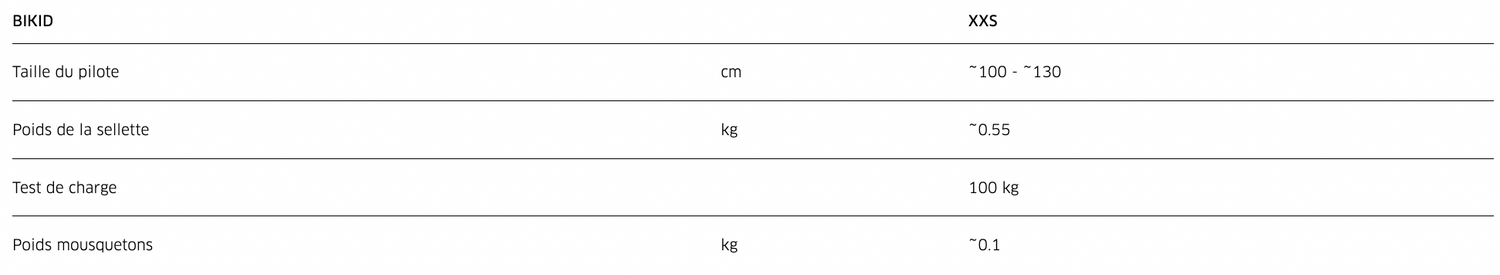 | Poids de la sellette | kg | ~0.55 |