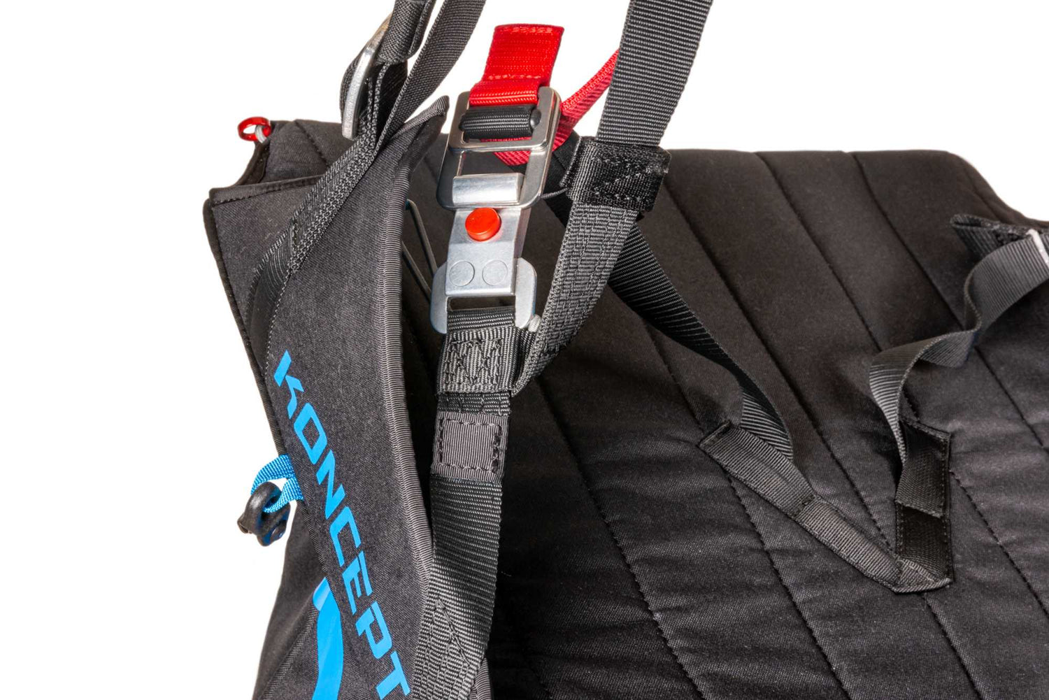 Grâce à son système exclusif de réglages, la Koncept est la première sellette du genre qui s’adapte parfaitement à toutes les morphologies de pilotes. En plus des réglages habituels de confort, il est également possible d’ajuster la longueur du dossier, la hauteur des points d’ancrage, et la taille de la planchette d’assise. L’airbag dorsal s’ajuste à chaque taille, pour une protection optimale.