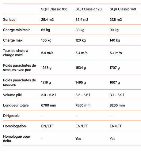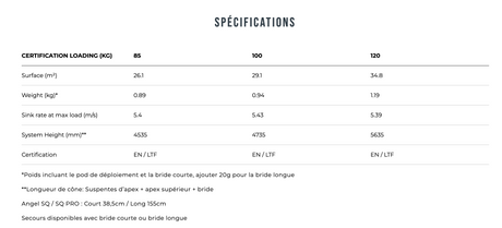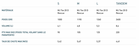 Supair X-LITE 80, 95, 110 Parachute de secours ultra-light