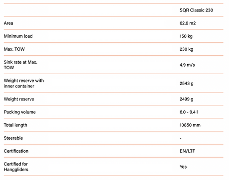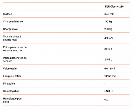 Parachute Biplace Companion SQR Classic 230