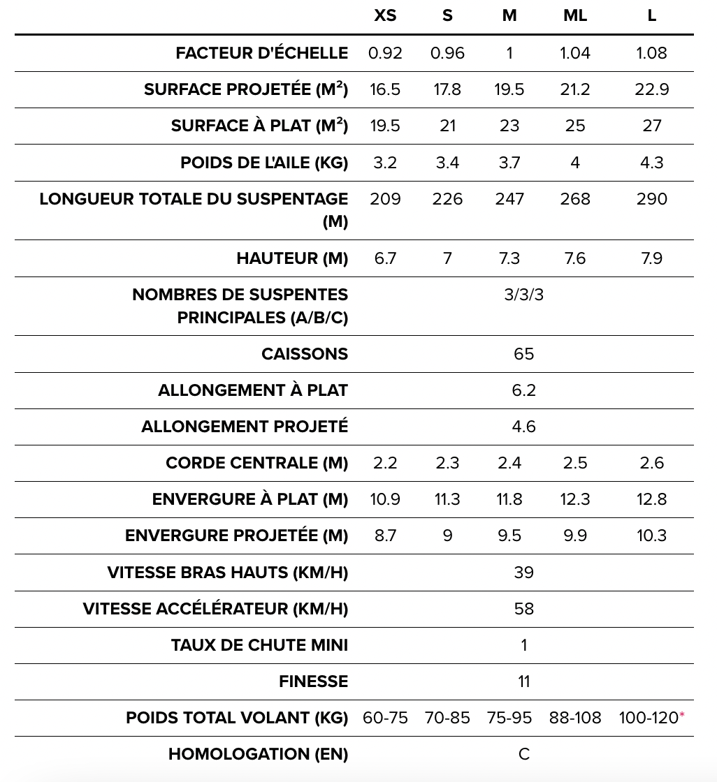 La LYNX 2 est plus accessible et plus facile à piloter que la CURE 2, avec un allongement et un nombre de cellules légèrement inférieurs.