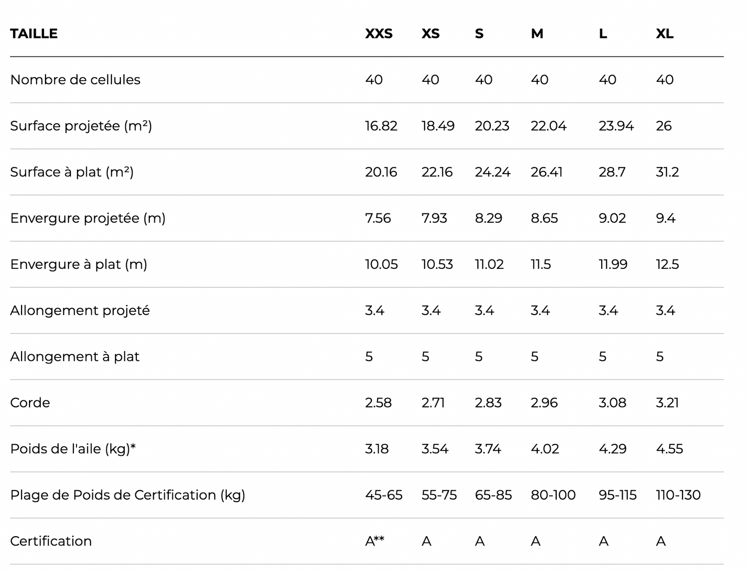 🕊️ Voûte prononcée + winglets : stabilité spirale et maniabilité exceptionnelles