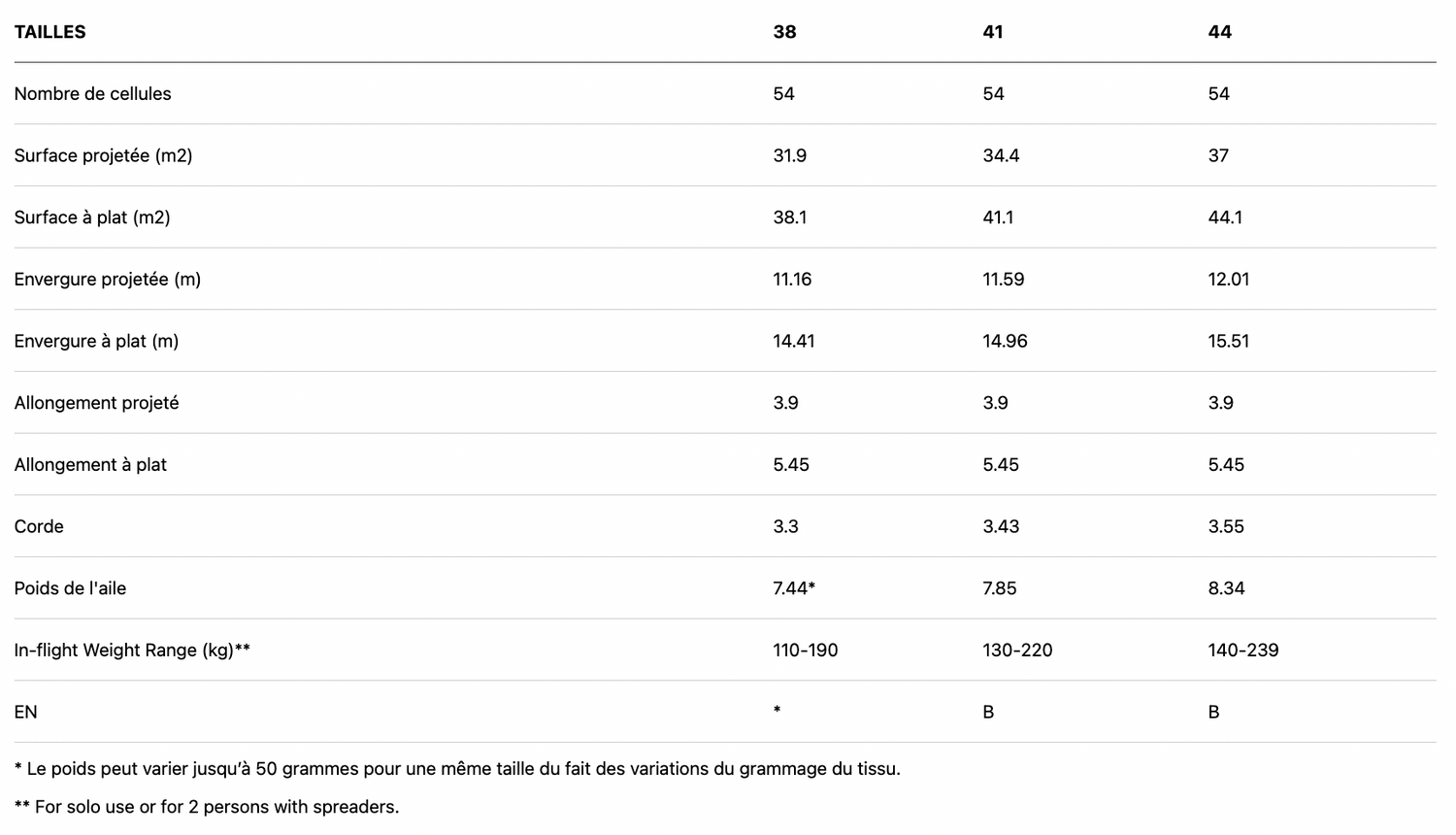2. C’est aussi un tissu rigide, ce qui veut dire moins de déformation du tissu et une plus grande longévité. Cela veut aussi dire un pilotage plus agréable et un virage plus aisé.