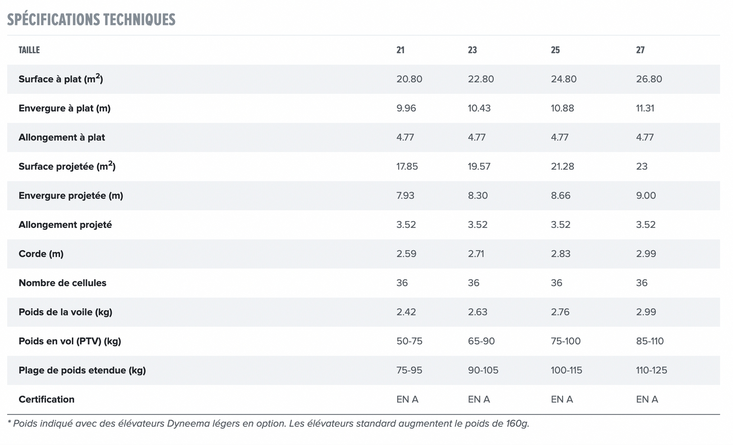 La particularité de la Yeti 6 n’est pas seulement d’offrir une gamme incroyablement large de charges alaires volables, mais surtout de conserver une stabilité inégalée sur toute cette plage. L’homologation EN A a été obtenue même à des charges alaires élevées grâce à la stabilité inhérente de l’aile dans tous les axes.