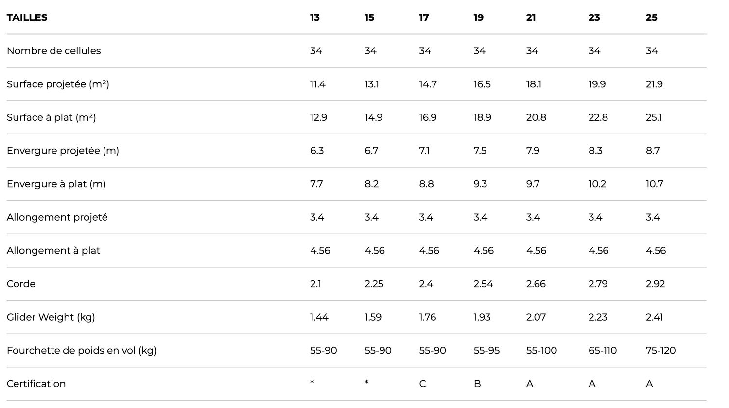 La nouvelle courbure de voute en fait une aile plus compacte, avec un pilotage plus intuitif et plus direct. Le nouveau découpage des panneaux de tissu et un vrillage modifié ont réduit considérablement la traînée, permettant d’améliorer la Vraie Performance de l’aile sans compromis sur la sécurité.