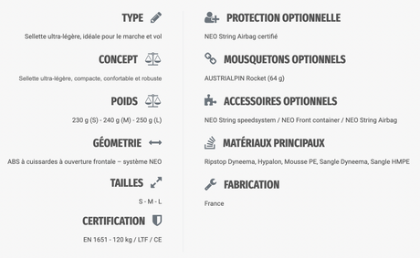 Sellette speed-riding Néo Body 2.0 (derniers modeles disponibles)