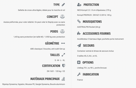 Stock très faible (2 unités)Prix soldé €809,00 Prix habituel €990,00Prix unitaire Harnais de speed et parakite Flare PROXY