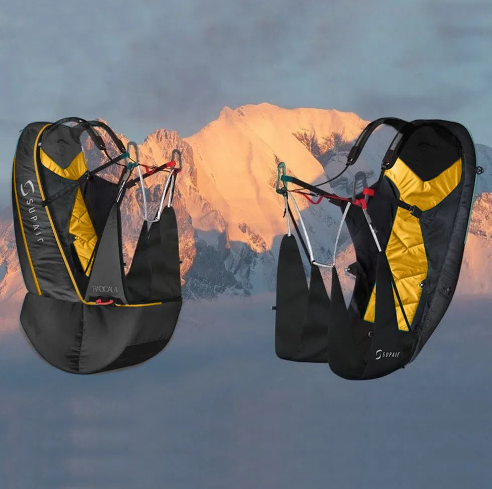 Particulièrement adaptée pour vos vols montagne et marche et vol, la Radical 4 est une sellette réversible légère avec sac airbag amovible (EN OPTION), incluant un parachute de secours intégré sous-cutal dans la sellette.