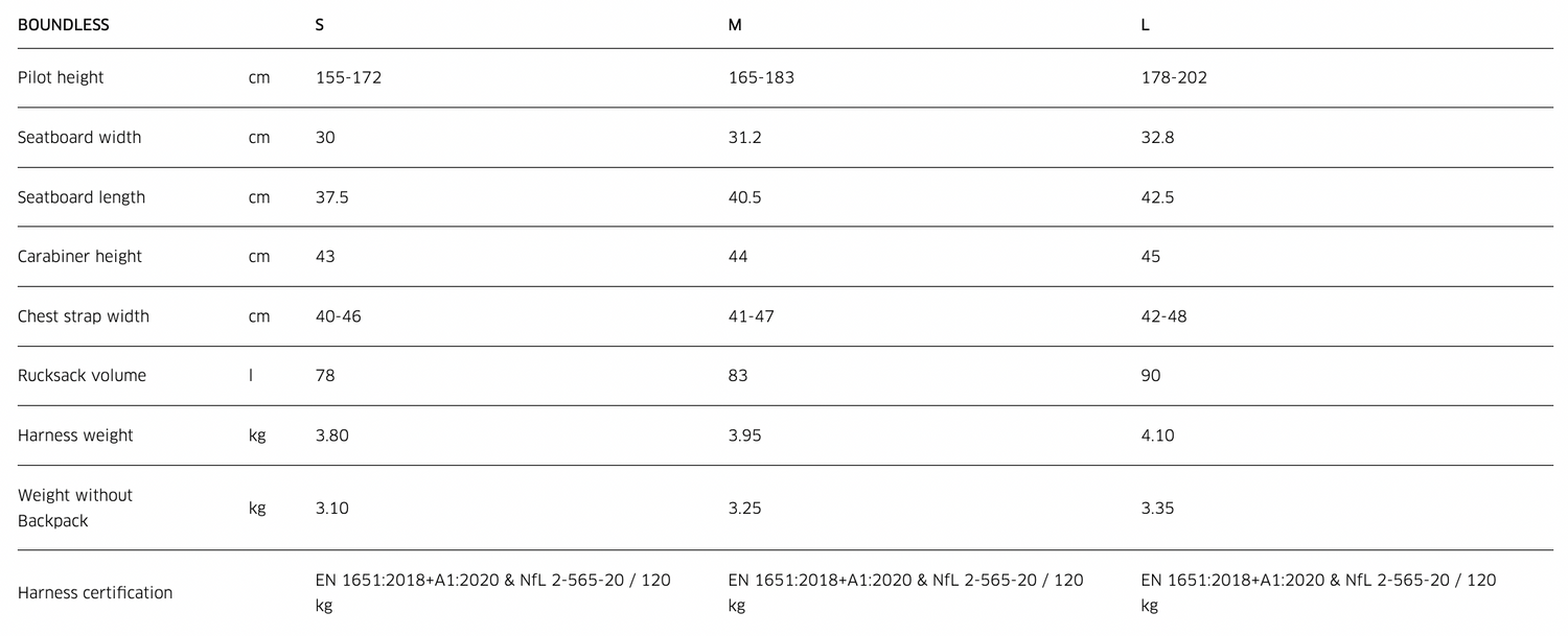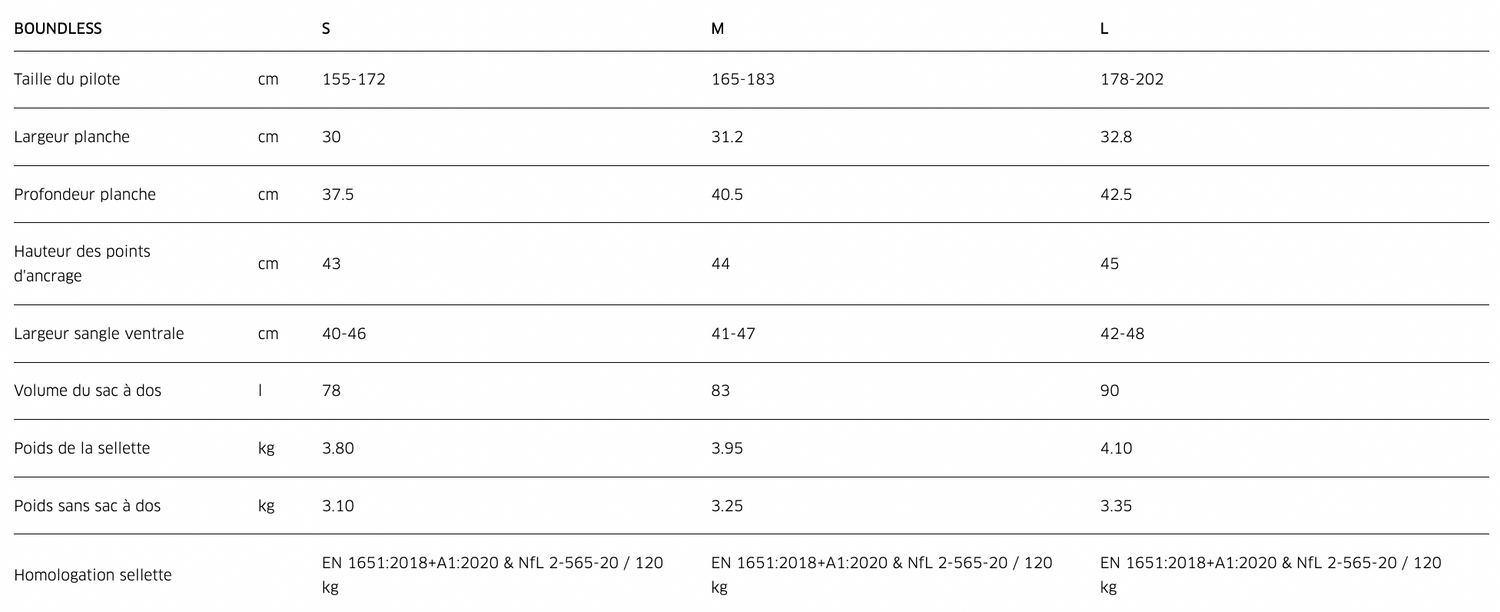 Avec un poids total de 3,8 kg, le BOUNDLESS est un équipement léger et confortable qui t'accompagnera dans toutes tes aventures grâce à sa grande capacité d'adaptation et à sa nouvelle solution de sac à dos : du début de ta carrière de pilote jusqu'au vol thermique, en passant par les Marches & Vols et les vols de distance.