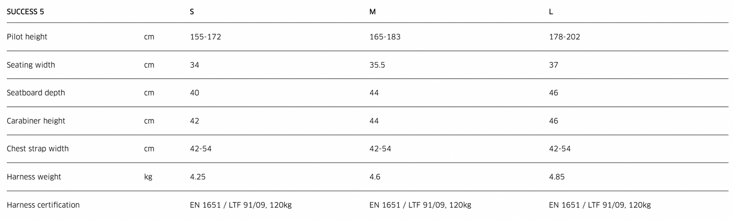 Proposée dans un design totalement retravaillé, la SUCCESS 5 constitue le coup d’envoi d’une toute nouvelle identité visuelle. Haut de gamme, cette sellette sport position assise dotée d’un maximum de sécurité s’adresse aux pilotes de loisir et de distance qui attachent une grande importance à un très grand confort allié à une excellente aérodynamique.