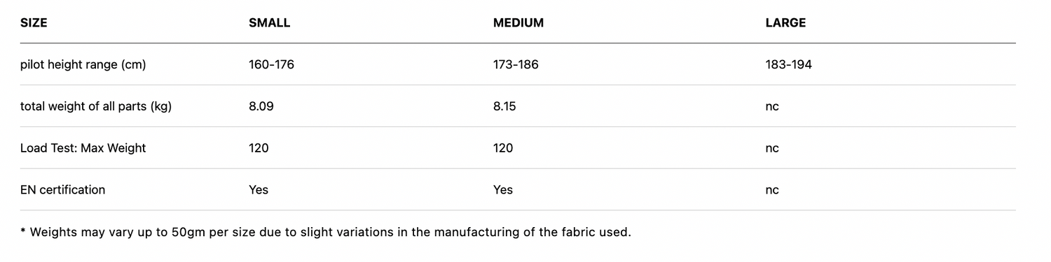 - Peut se dégonfler immédiatement en pliant les genoux, en cas de forte turbulence ou de fermeture de l’aile.