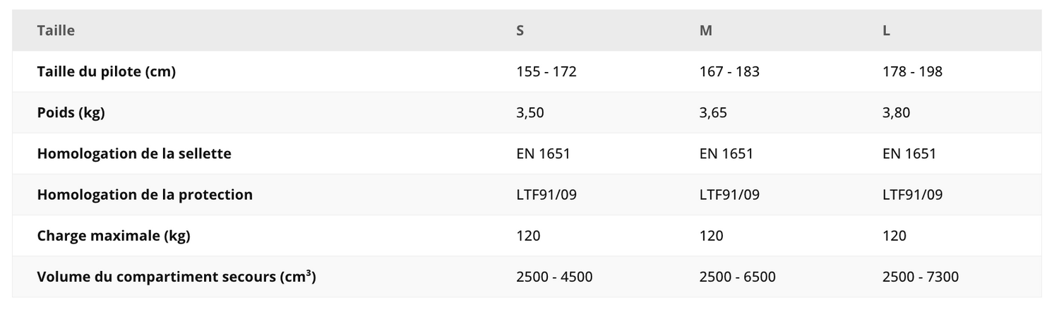Le grand compartiment de rangement arrière vous offre suffisamment d’espace de rangement, pour votre système d’hydratation et autres accessoires. Les objets dont vous avez besoin pendant le vol peuvent être rangés rapidement et facilement dans la poche latérale refermable.