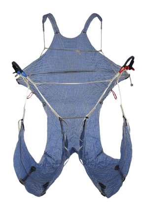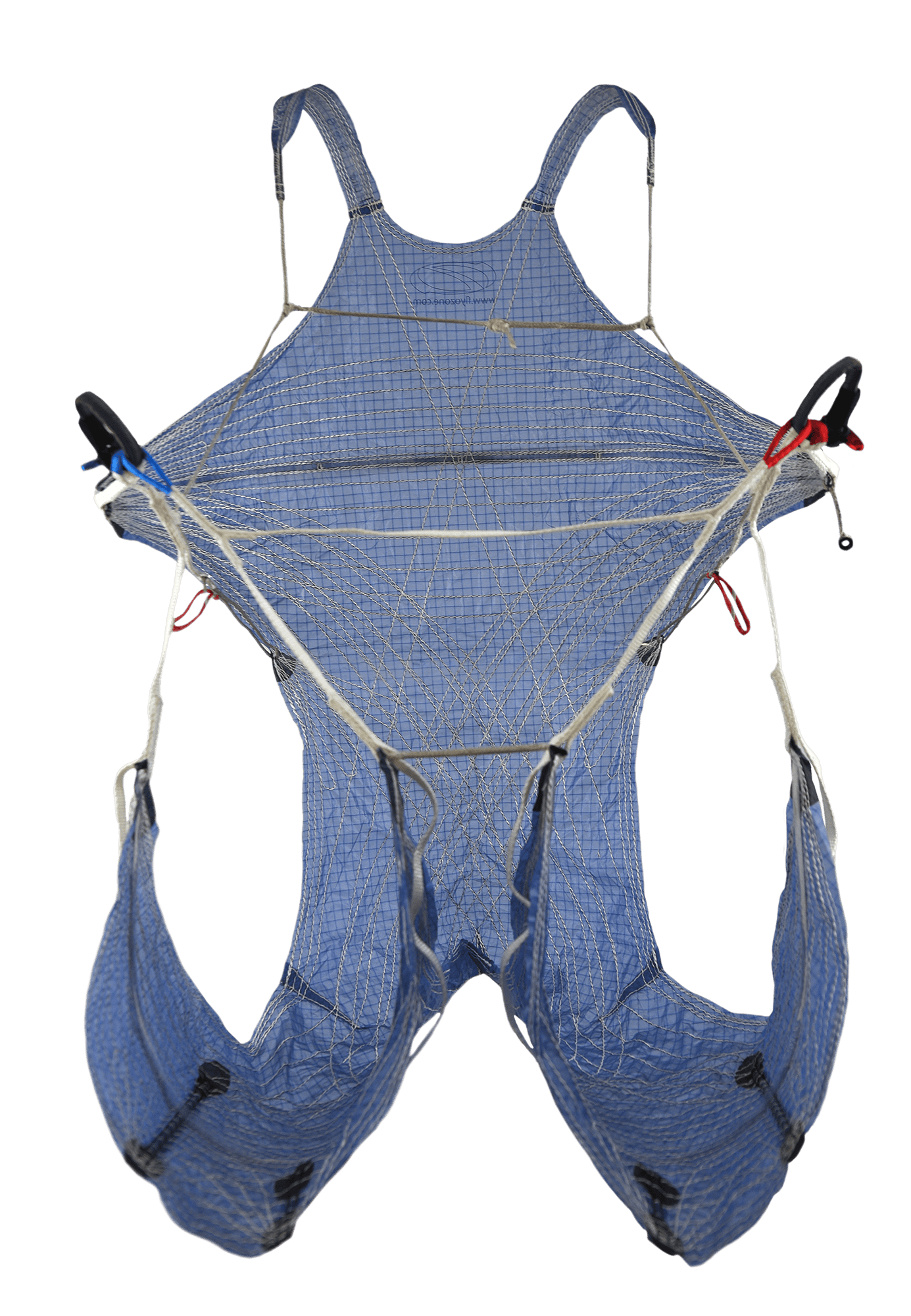 La structure de cette sellette est formée d'un maillage optimisé en Dyneema qui vient renforcer un siège en tissu ripstop. Des sangles d'épaule réglables améliorent le confort et la nouvelle position des renforts en fibre de carbone assurent un meilleur support des jambes et une facilité d'utilisation accrue, particulièrement au décollage.