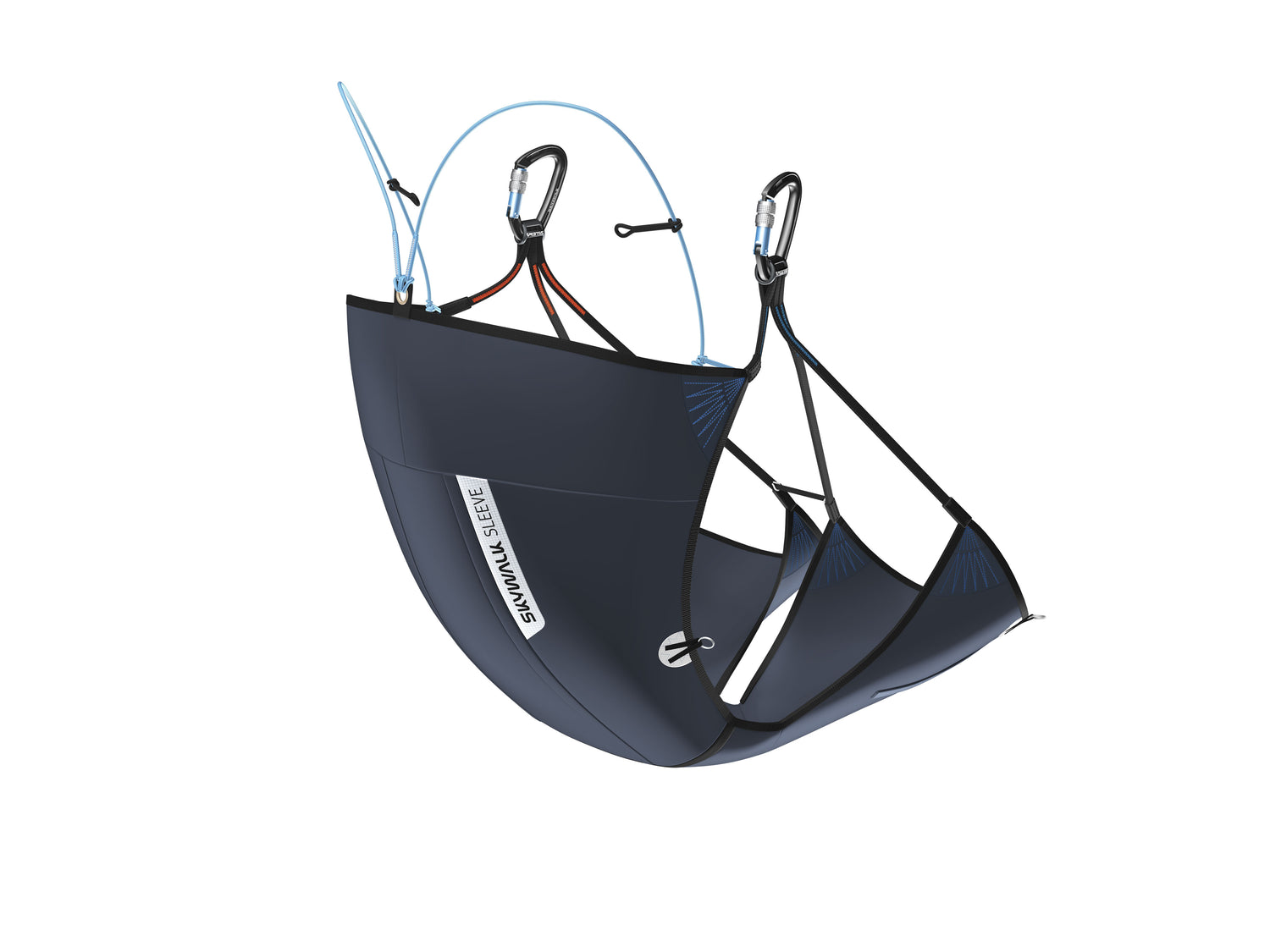 La SLEEVE est une sellette à boucle classique dotée d'une suspension haute grâce à sa conception. Cela se traduit par une meilleure stabilité en roulis et un comportement de vol amorti en turbulences. Ce comportement est particulièrement agréable, surtout avec les très petits parapentes.