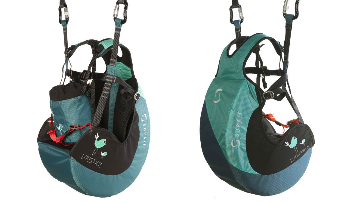 Parce que les petits comme les grands peuvent avoir envie de découvrir le monde du vol libre, nous avons développé la LOUSTIC 2 une sellette destinée au vol biplace pour les enfants de 3 à 6 ans. Grâce à sa poche à doudou, le jeune passager pourra embarquer accompagné de son fidèle compagnon sans risque de le faire tomber.
