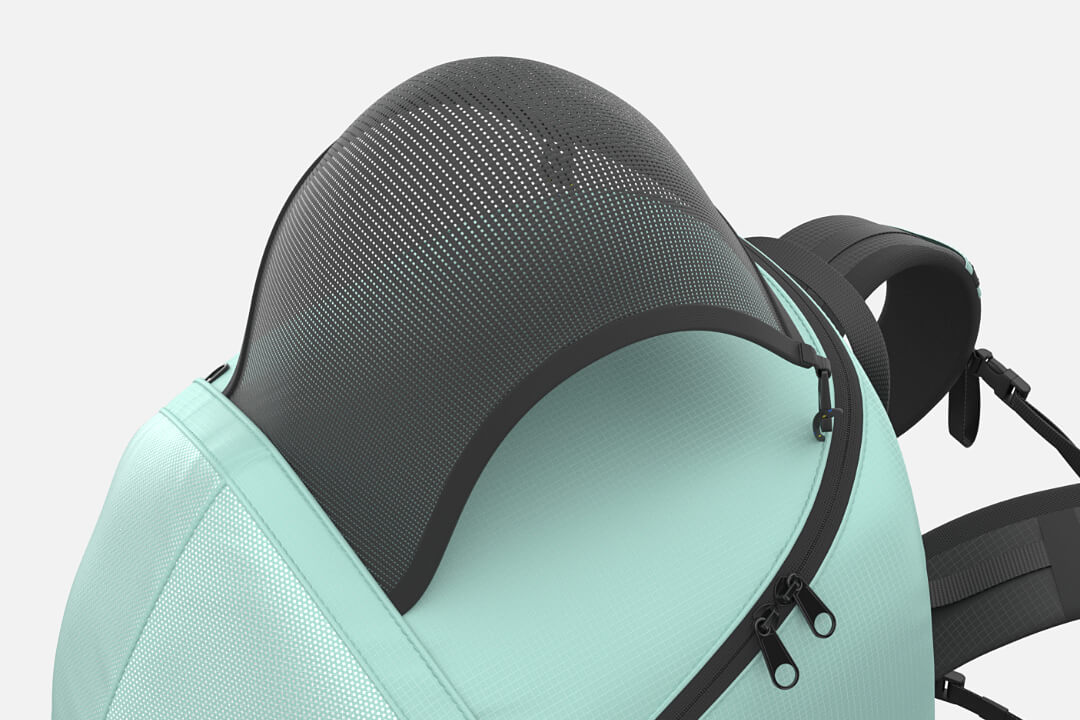 Le filet pour casque permet de gagner de la place dans le sac à dos.
