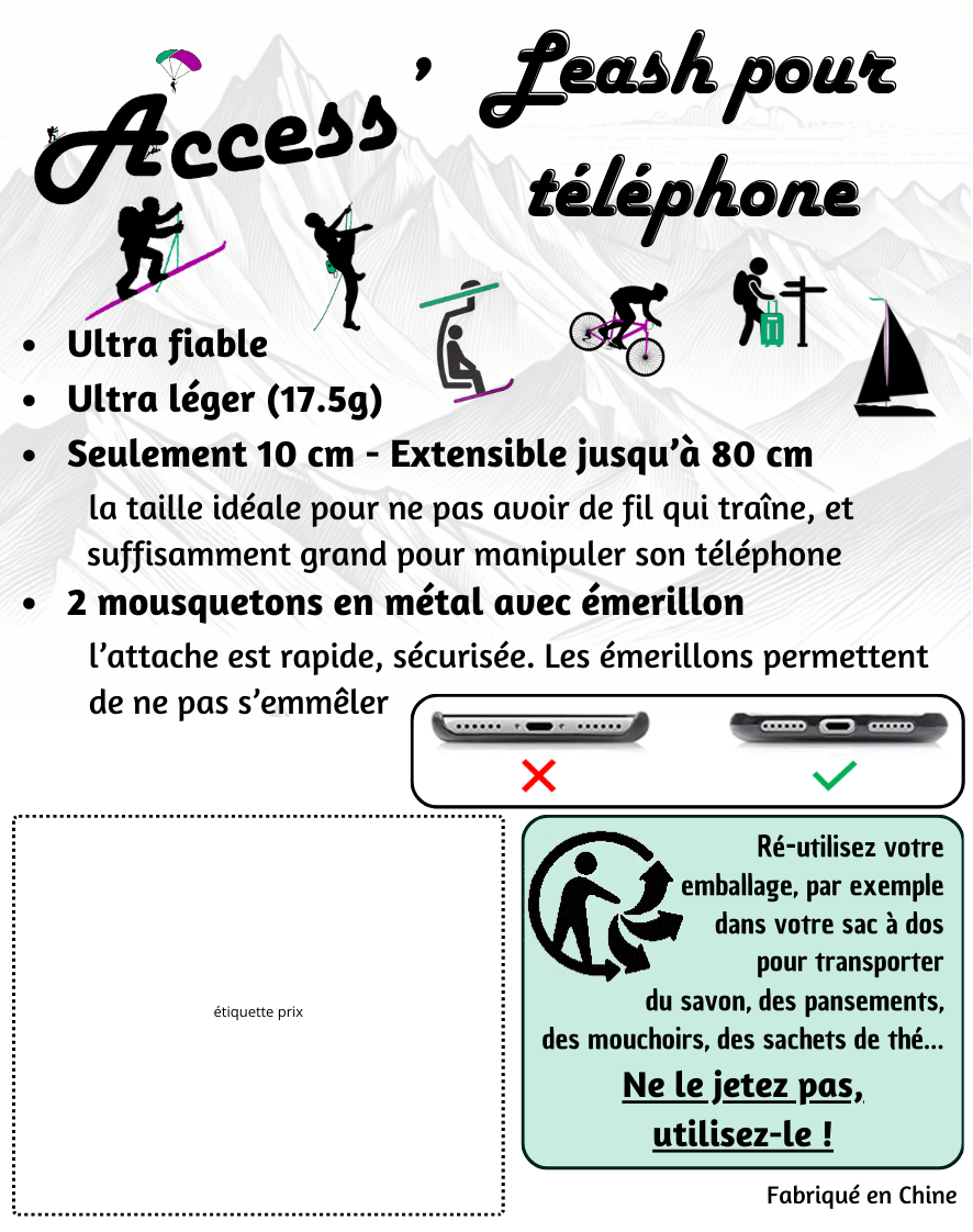 Leash pour telephone est en rupture de stock et sera expédié dès qu’il sera de retour en stock.