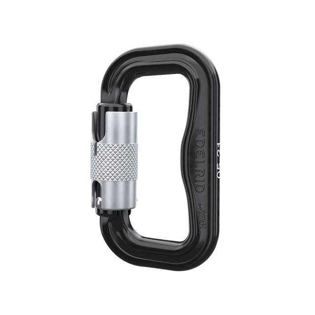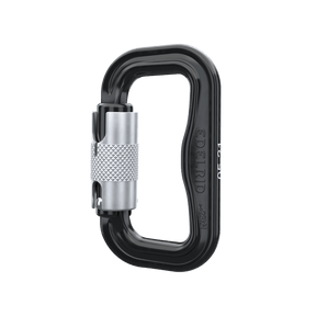 It is a carabiner with a large opening, specially designed for modern, narrower harness straps, which also cannot twist or slip.