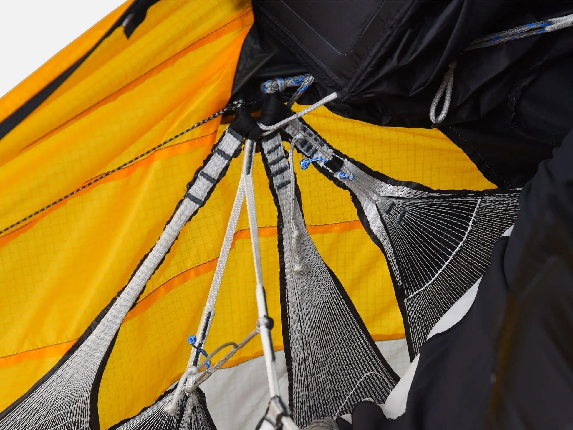 La protection en mousse ultra-légère et le nez en Nitinol assurent un pliage très compact et un gonflage rapide de l’enveloppe.