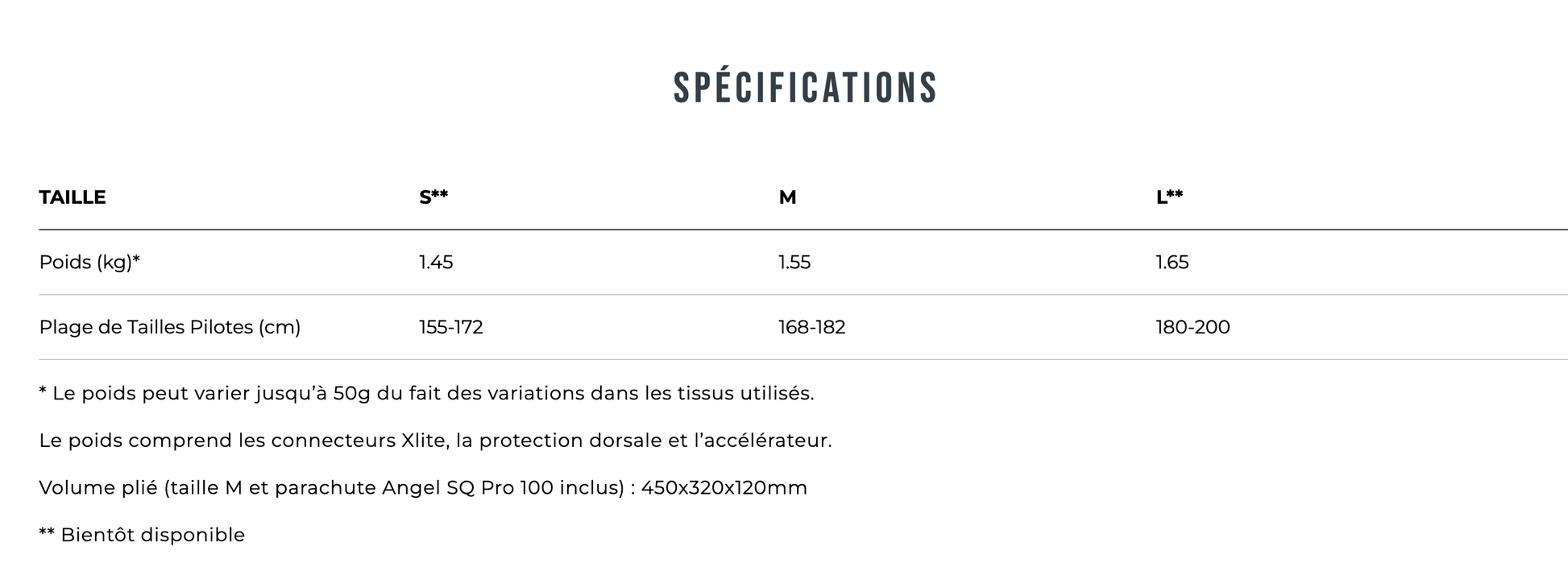 Le Sublite est certifié EN 1651-2018 pour des pilotes jusqu’à 115kg. La protection dorsale en EPP a obtenu un pic d’impact maximal de 42 G pendant la certification.