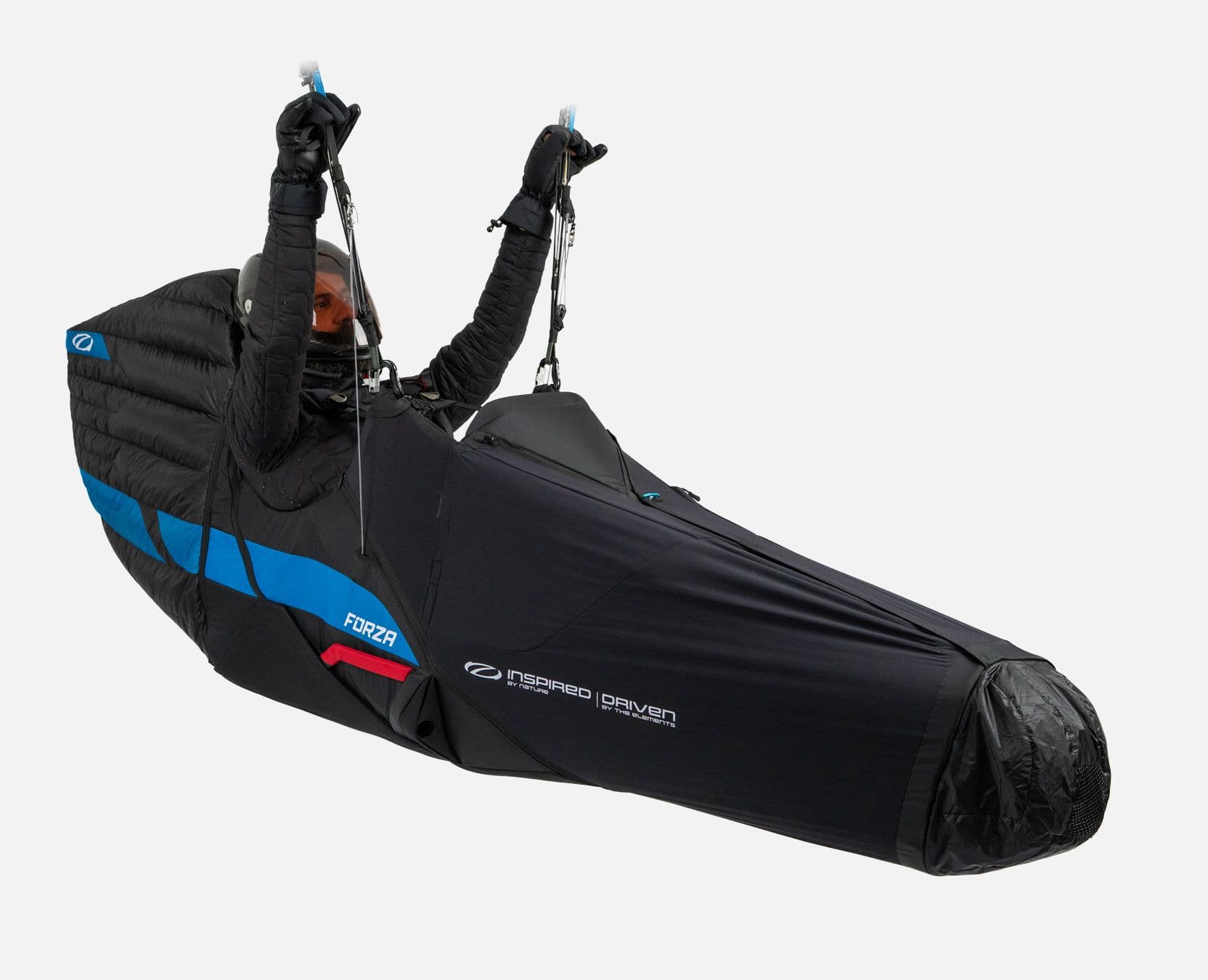 La Forza 2 intègre deux compartiments de parachutes de secours à ouverture magnétique. Ce système garantit des ouvertures larges et fluides tout en préservant une aérodynamique parfaite pendant le vol normal. Les poignées, parfaitement intégrées dans la sellette, restent faciles à attraper en cas de besoin.