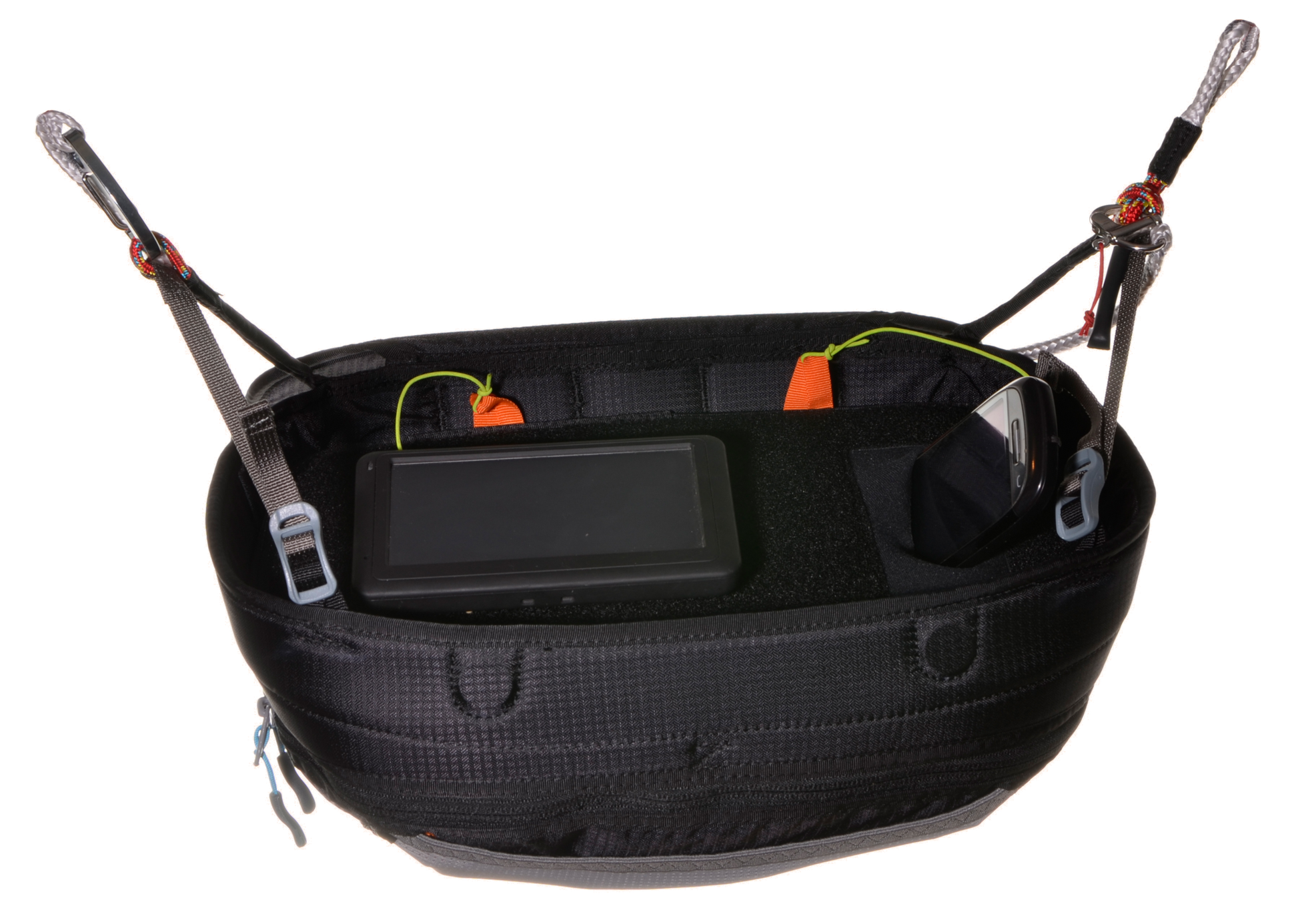 Le Kockpit Safe est le premier porte-instrument qui intègre cette technologie jusque là réservée aux sellettes, car son système d’accroche unique permet de relier l’une des cuissardes aux 2 maillons principaux. A partir du moment où le Kockpit Safe est attaché, le pilote ne peut plus tomber de sa sellette.