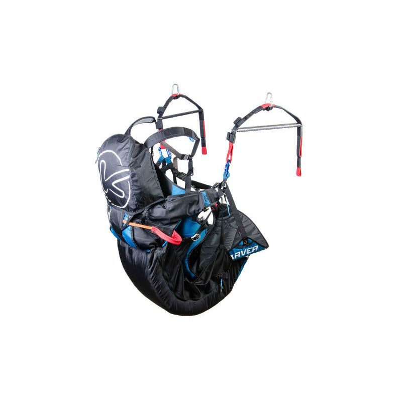 Le module biplace permet d'adapter une Karver II en sellette biplace pilote, avec sac et poche parachute de secours.