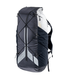 La géométrie du sac est conçue pour une stabilité maximale en course ou en montée rapide. Les accessoires sont conçus pour être aussi complets que possible, simples d'utilisation et robustes. Les tissus sont positionnés pour offrir le meilleur rapport poids/résistance/compressibilité.